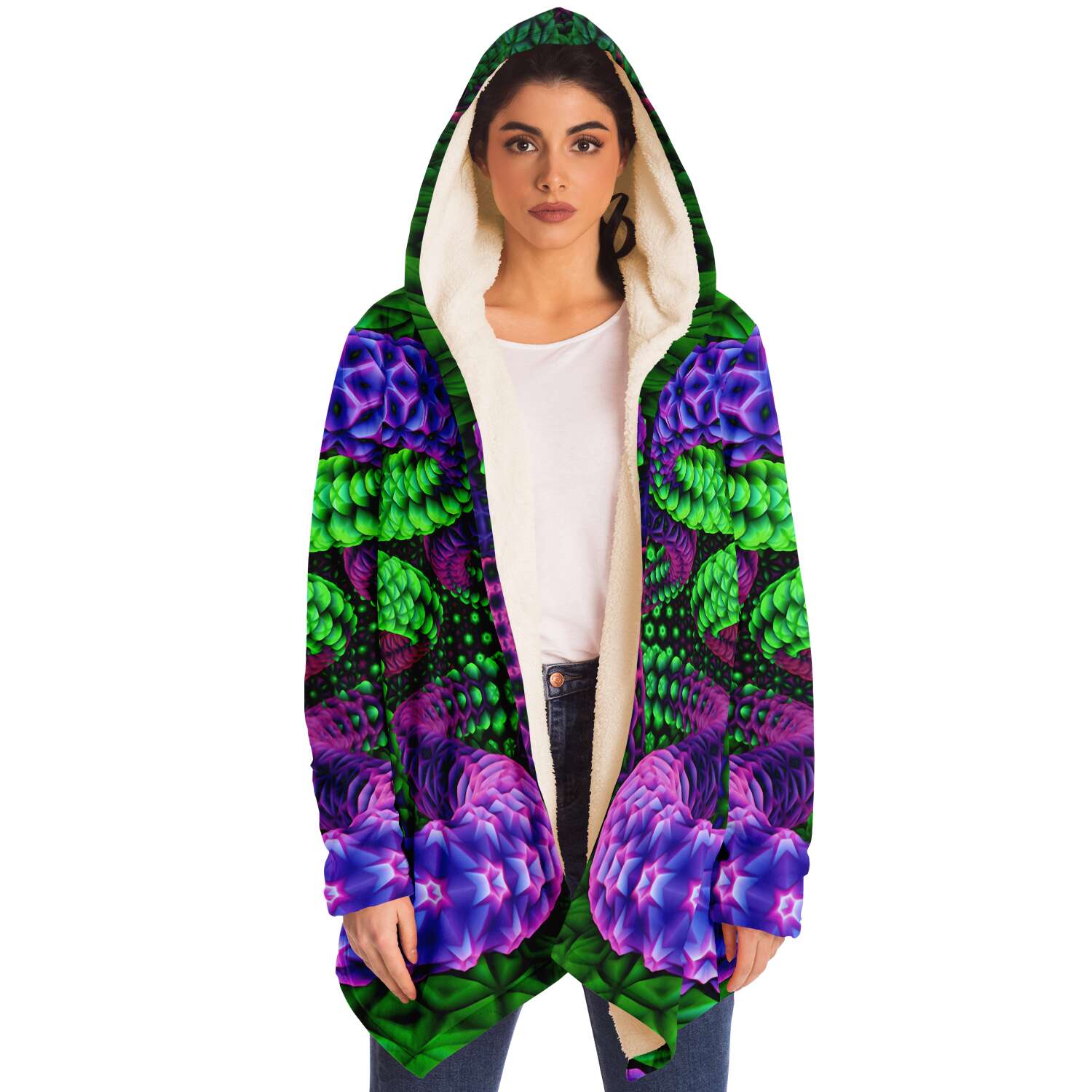 This luxurious cloak is made from an ultra-soft premium microfiber fleece lining. The outside is made with a micro-mink polyester fabric that allows the print to be high definition with vibrant colors. Featuring two deep side pockets to keep your belongings safe and your hands warm.