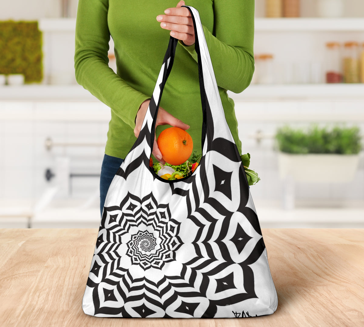- Add style and personality to your grocery shopping routine with a 3-pack of custom printed grocery bags!