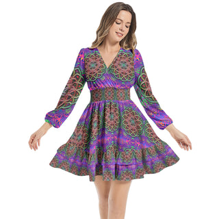 Becoming The Flower Of Life | Imran | Long Sleeve Tiered Ruffle Hem Elastic Waist Mini Dress