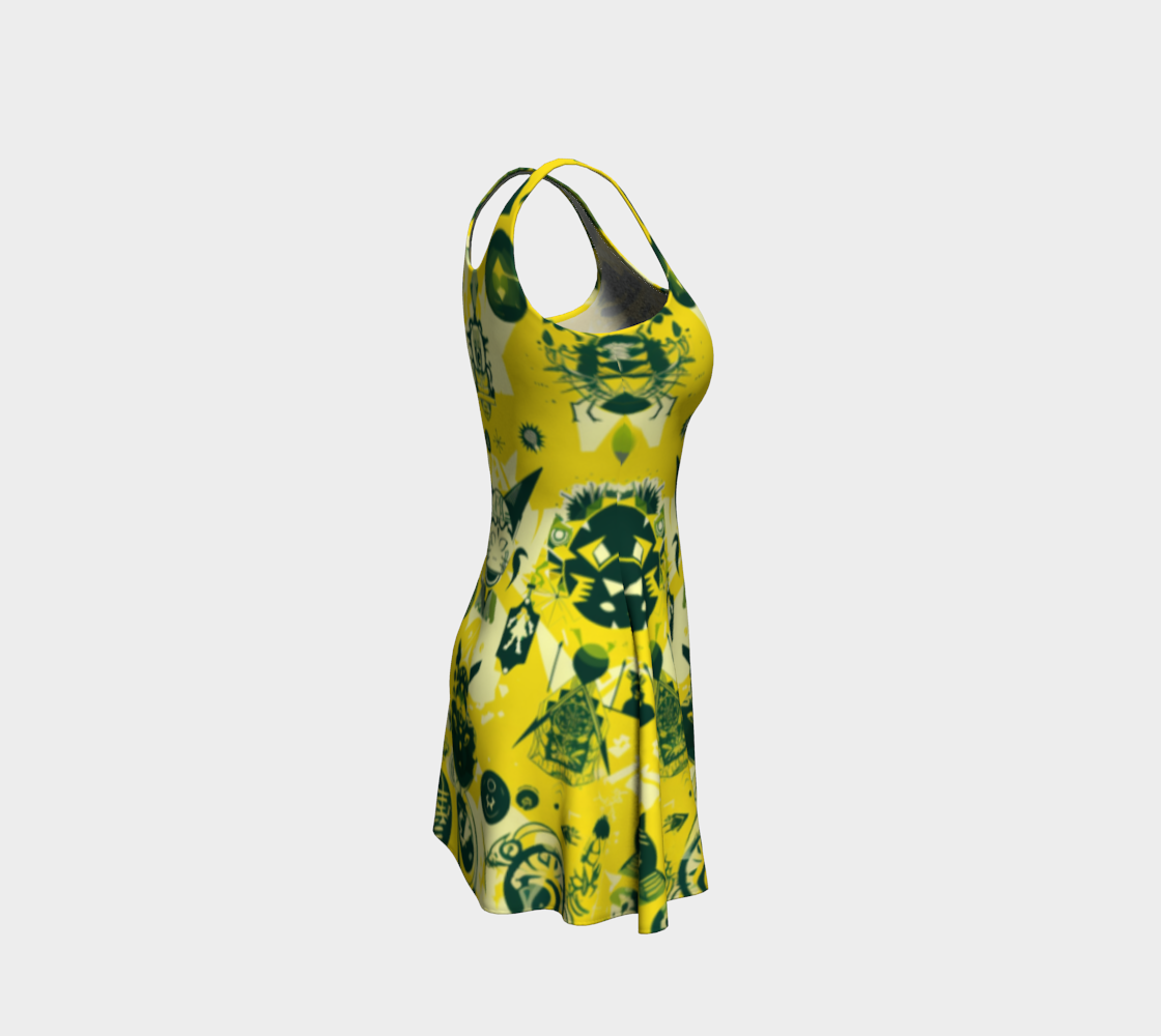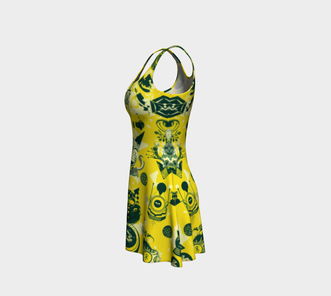 Featuring a fitted, body hugging top with a flared bottom skirt starting at the waist, this flared dress is ready to move with you from office to dance floor.