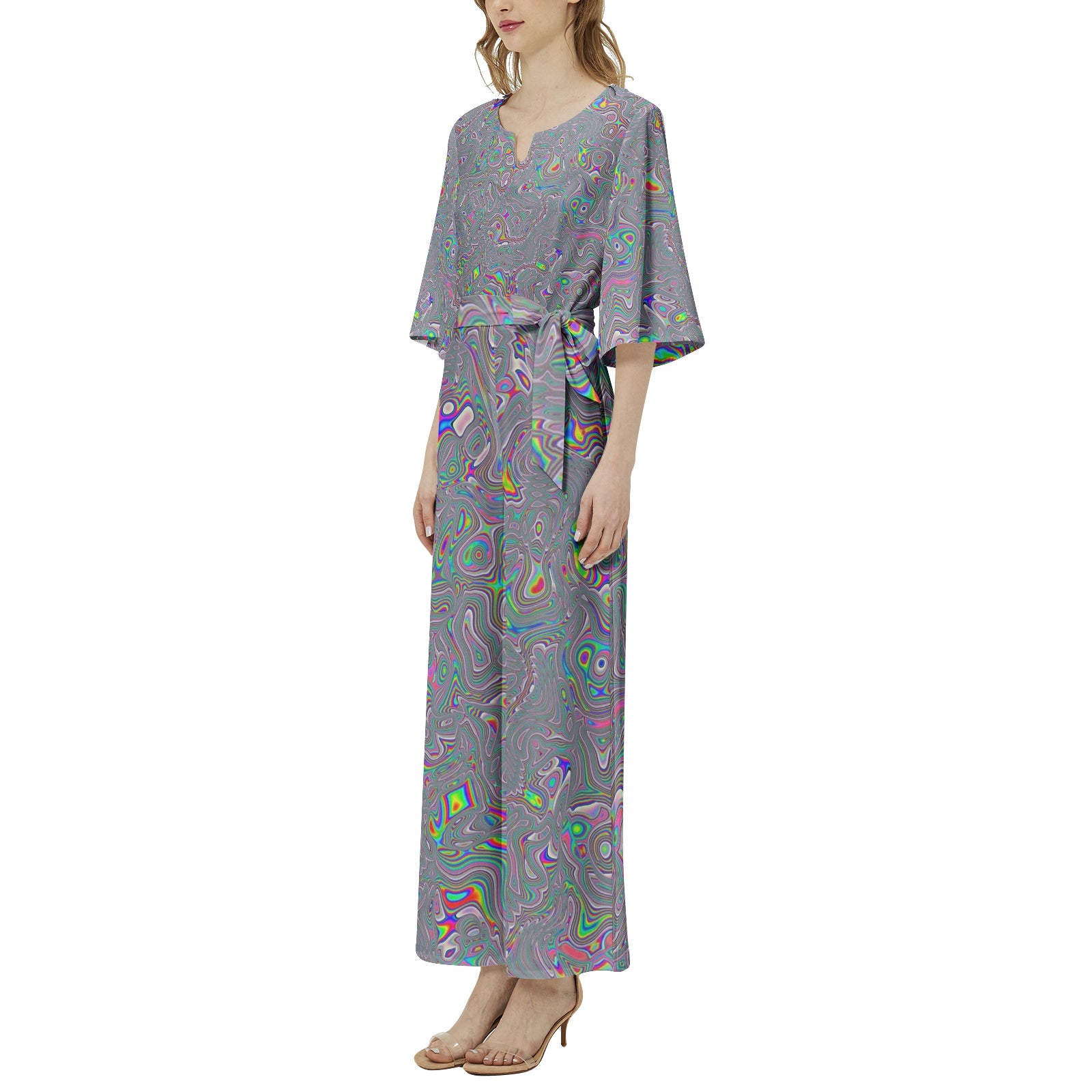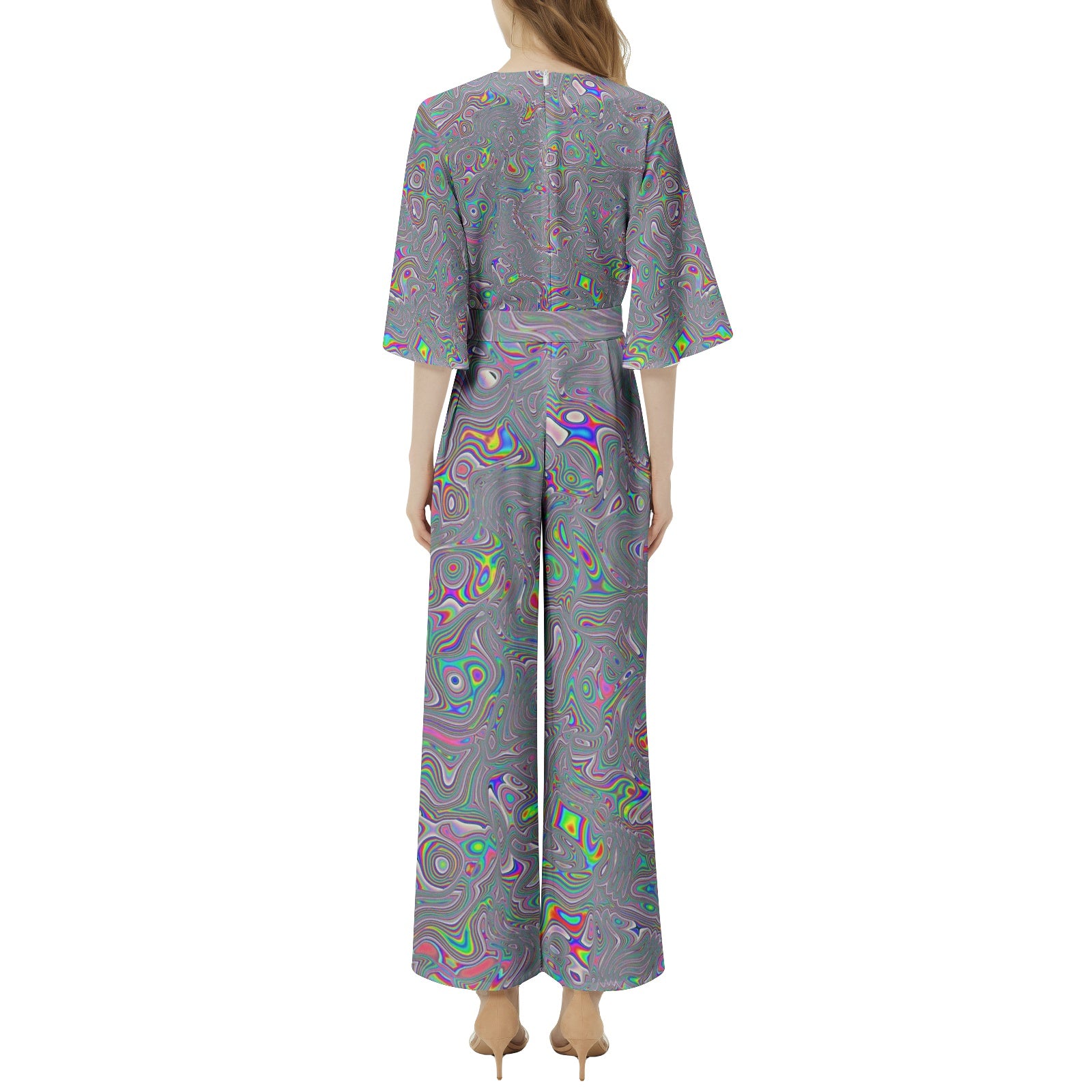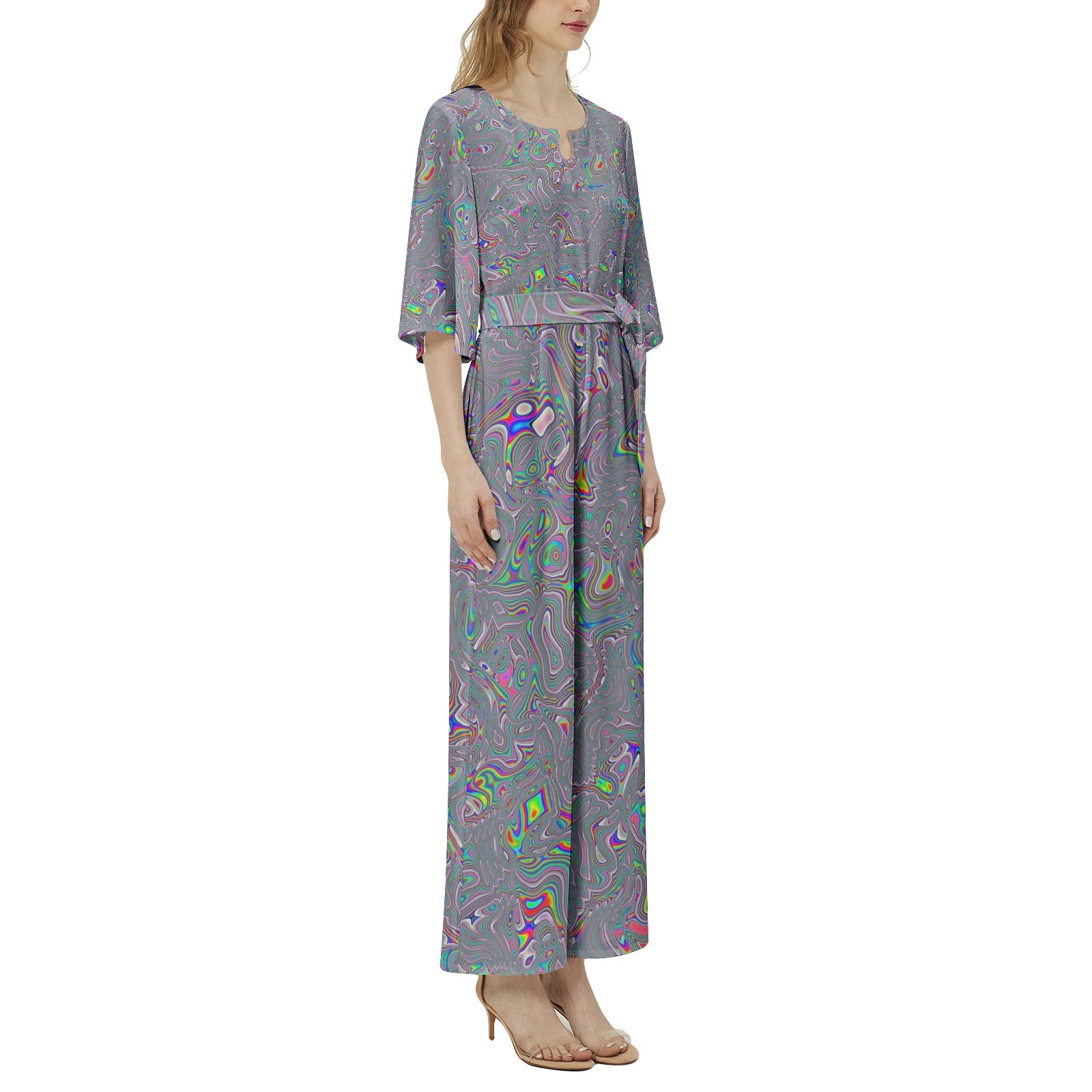 Dolman sleeve, Notch neck, High waist, Loose Wide pant legs, Belted jumpsuit