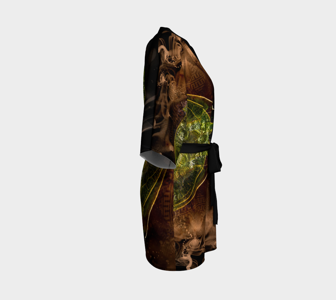 Artwork paired with luxury in this line of kimonos. Dramatic, elegant look. Perfect for special occasions, gallery shows and festivals!