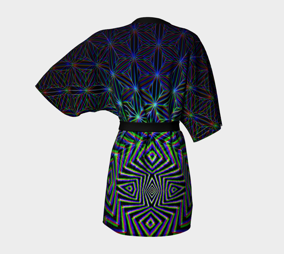 Artwork paired with luxury in this line of kimonos. Dramatic, elegant look. Perfect for special occasions, gallery shows and festivals!
