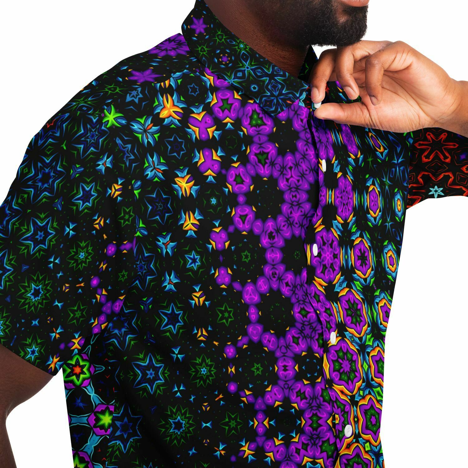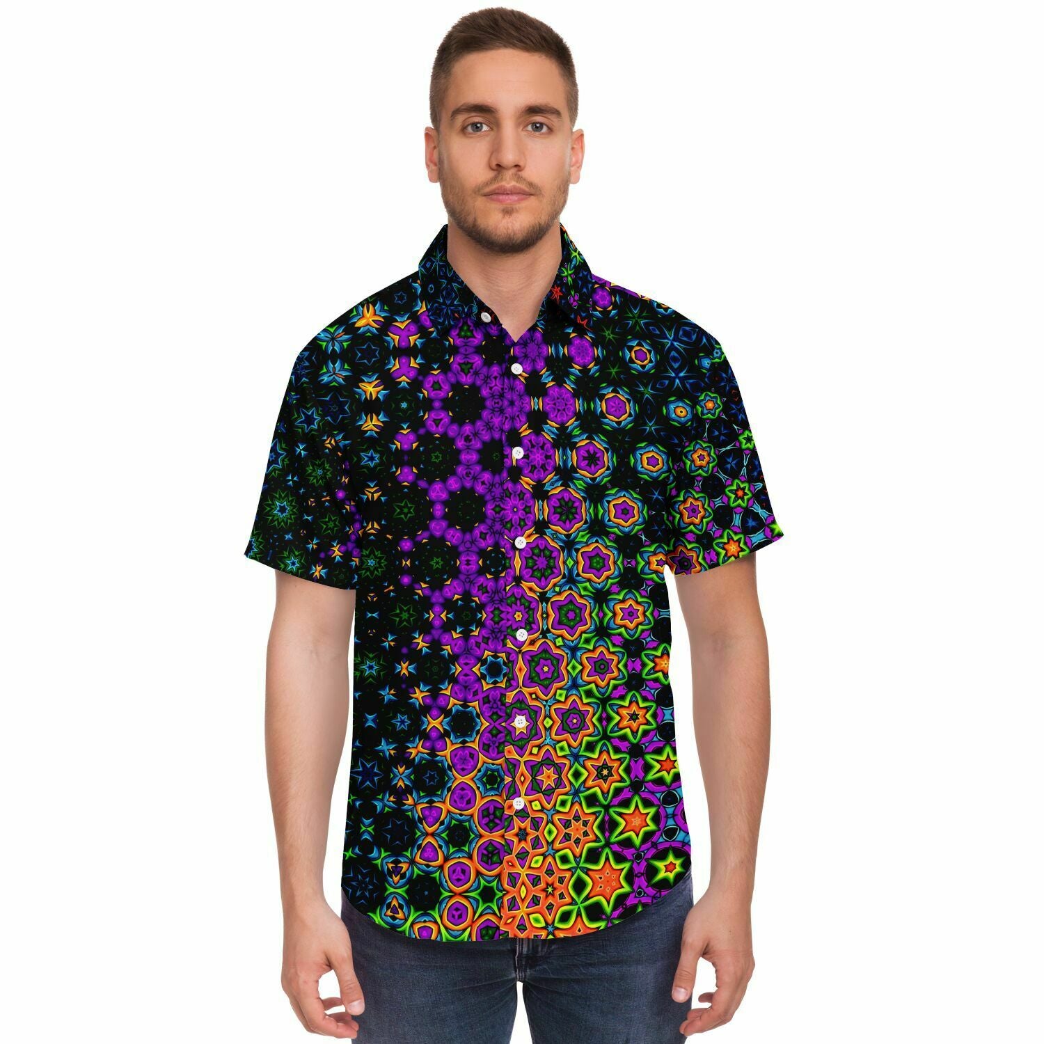 Trippy Vibes Short Sleeve Button Down Shirt - Cameron Gray