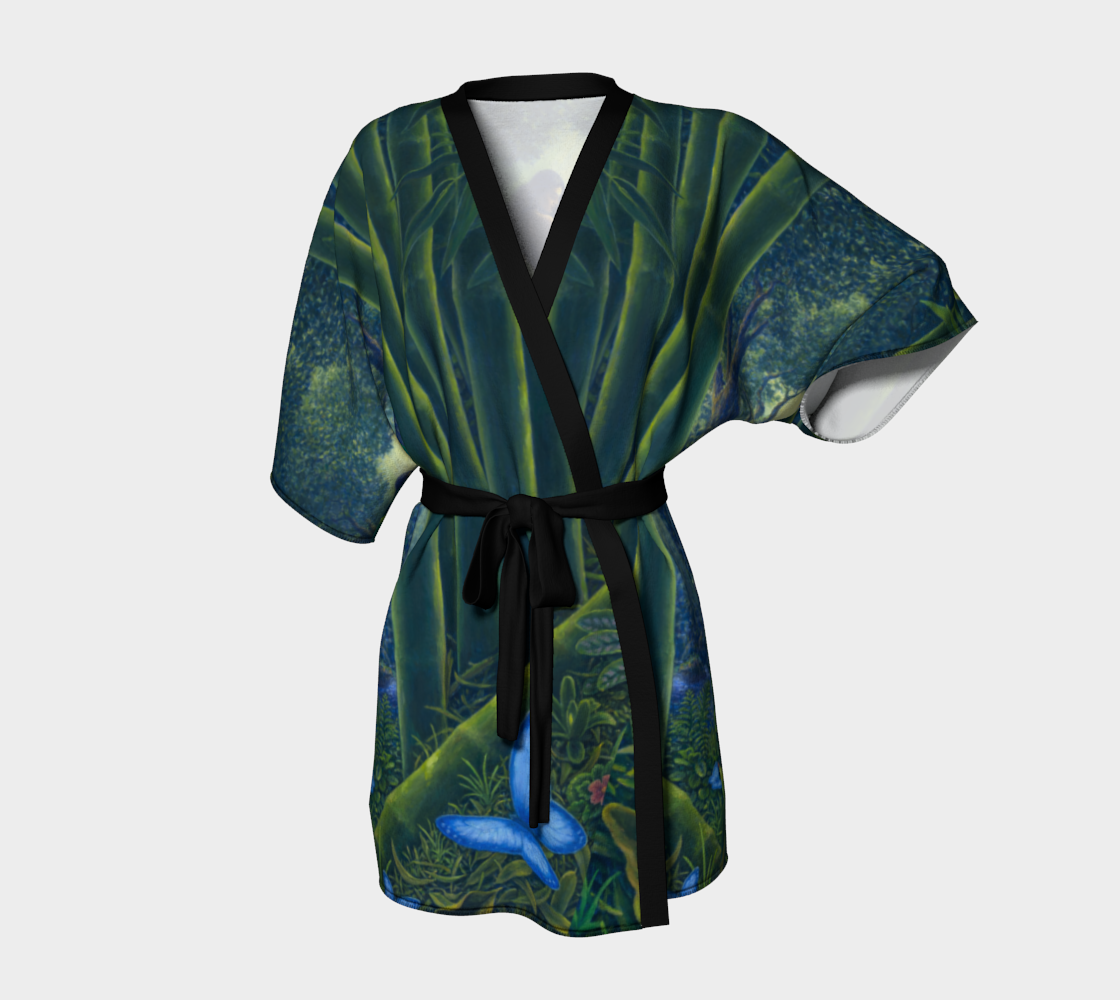 Artwork paired with luxury in this line of kimonos. Dramatic, elegant look. Perfect for special occasions, gallery shows and festivals!