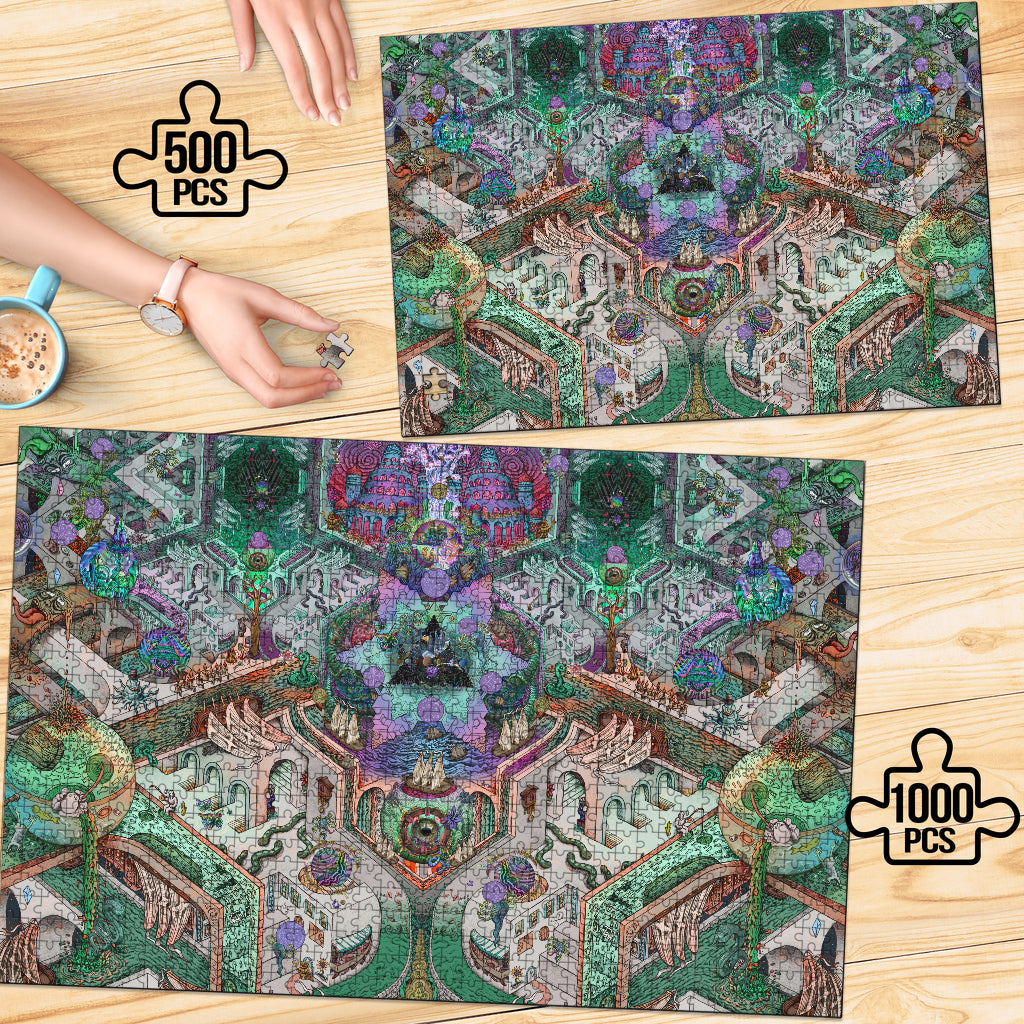 Ready to traverse the labyrinthine corridors of your mind? Opt for a 500-piece voyage to higher dimensions or a 1000-piece expedition into psychedelic oblivion. Prepare to spiral infinitely in this kaleidoscopic quest.