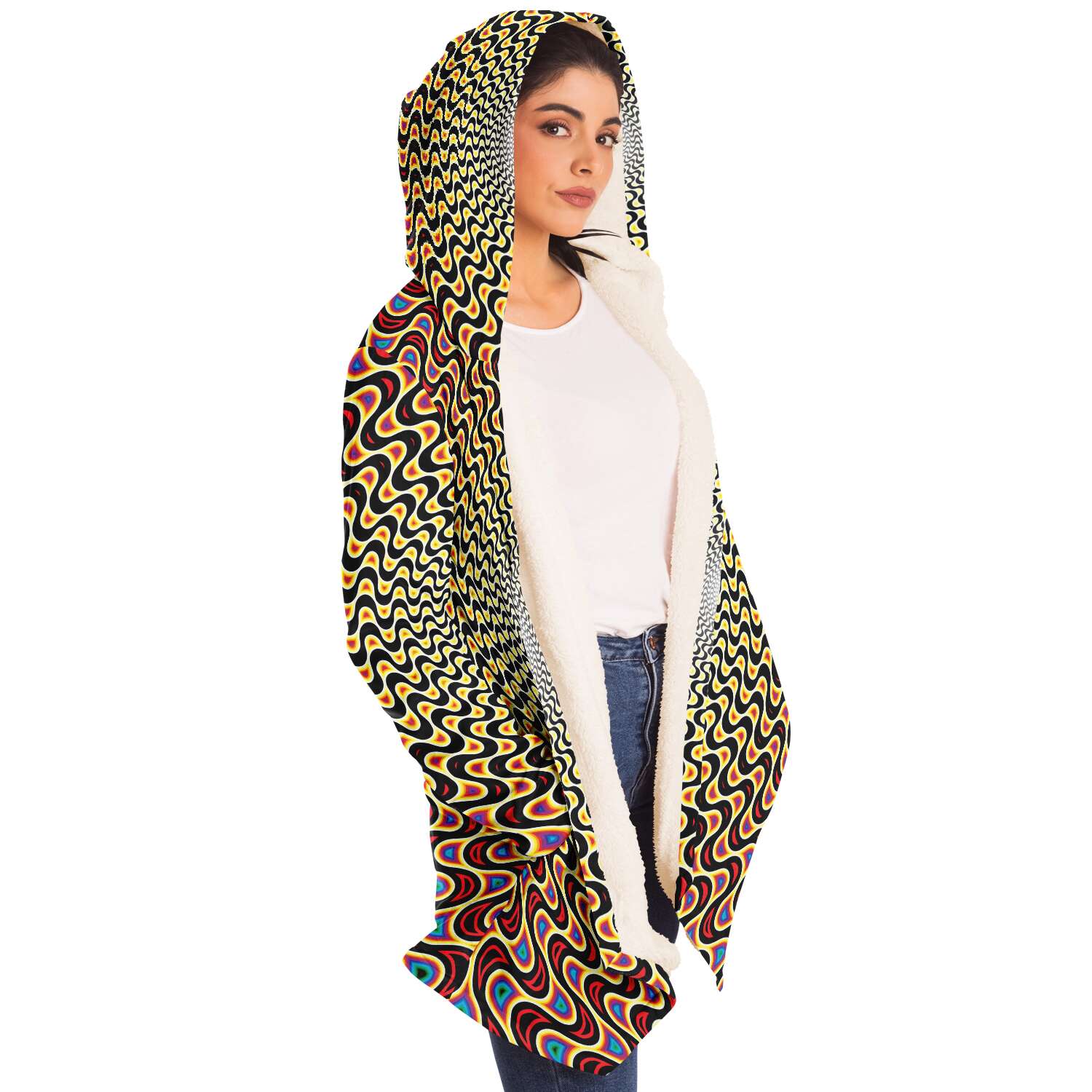 This luxurious cloak is made from an ultra-soft premium microfiber fleece lining. The outside is made with a micro-mink polyester fabric that allows the print to be high definition with vibrant colors. Featuring two deep side pockets to keep your belongings safe and your hands warm.