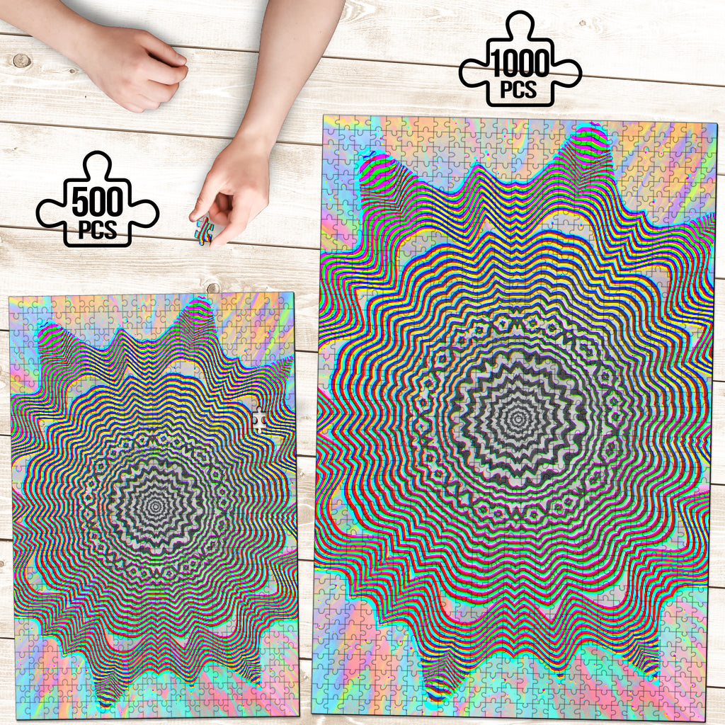 • These puzzles come in two sizes, 500 pieces or 1000 pieces – see sizing chart for detailed measurements.