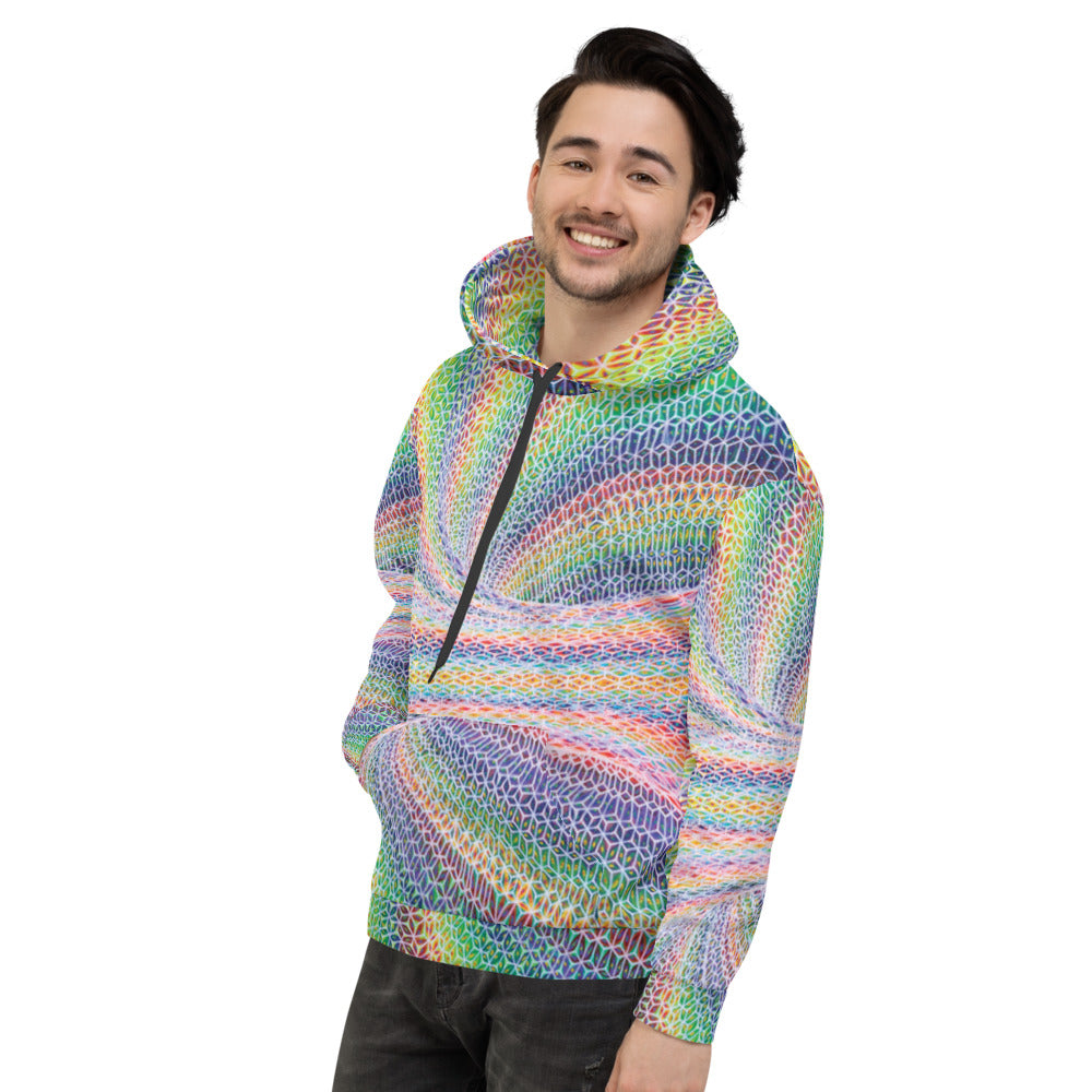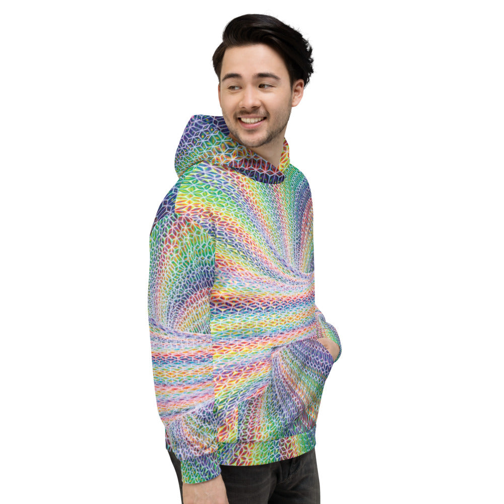 This comfy unisex hoodie has a soft outside with a vibrant print and an even softer brushed fleece inside. The hoodie has a relaxed fit, and it's perfect for wrapping yourself into on a chilly evening.