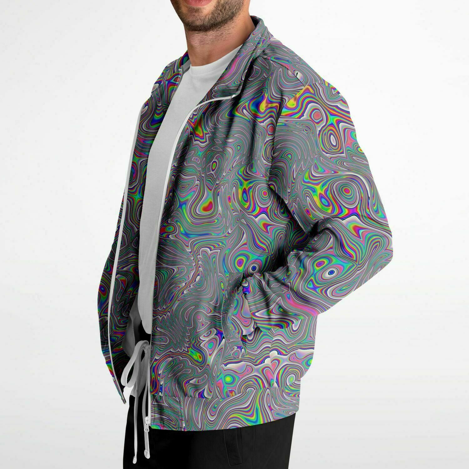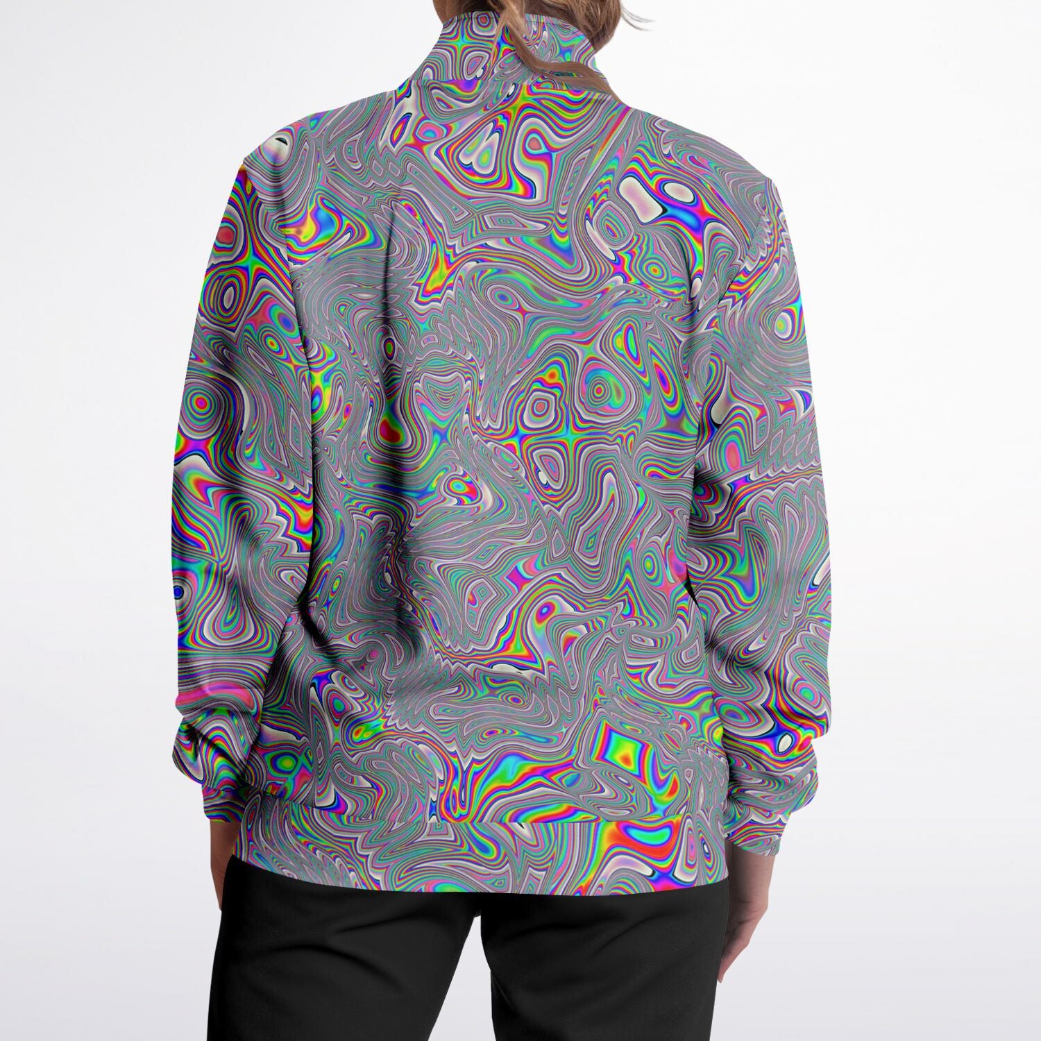 Presenting our sustainable track jacket, crafted from 95% recycled polyester and 5% spandex. With its smooth, tight-knit surface, it perfectly showcases vibrant prints and colors, while the inner surface ensures comfort for the wearer.