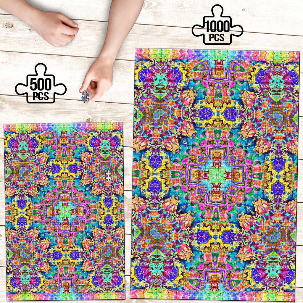 • These puzzles come in two sizes, 500 pieces or 1000 pieces – see sizing chart for detailed measurements.