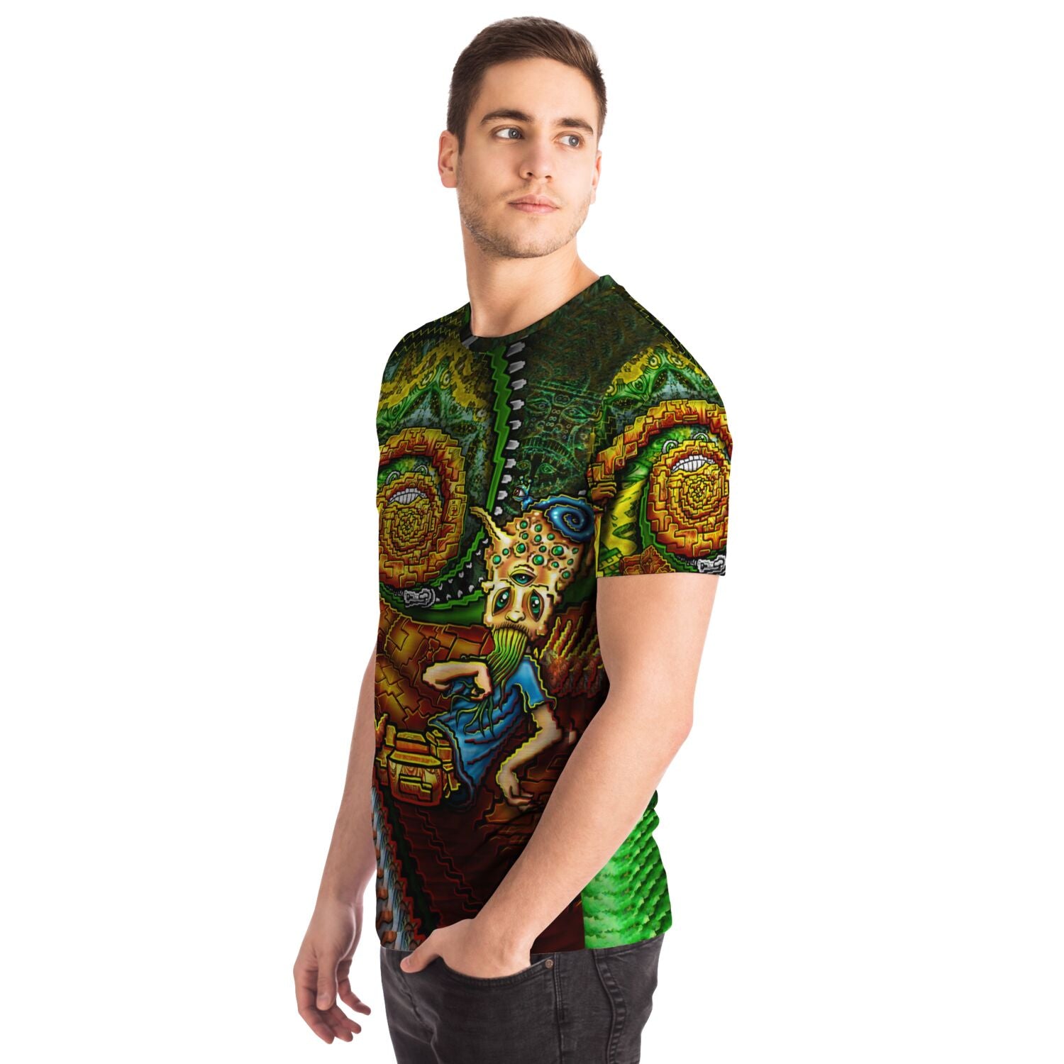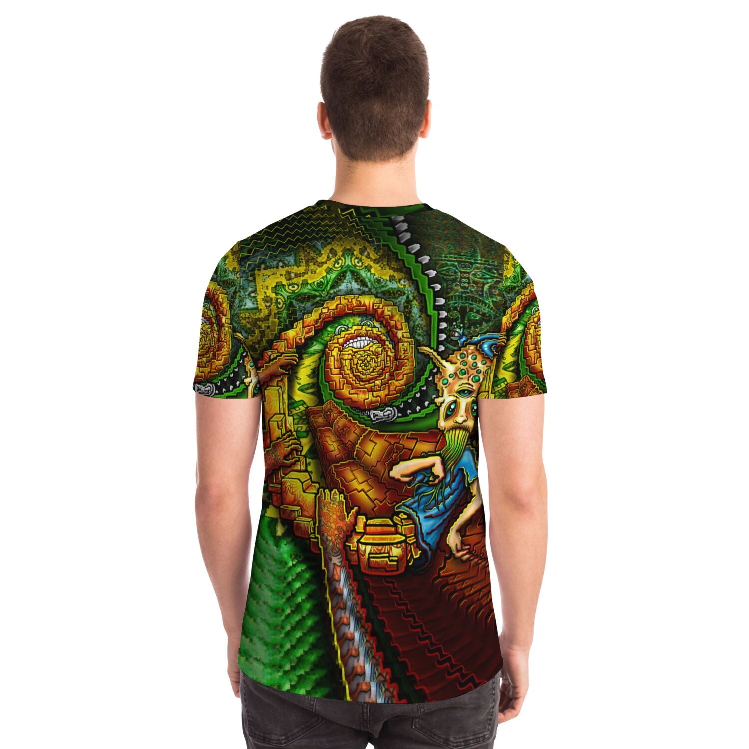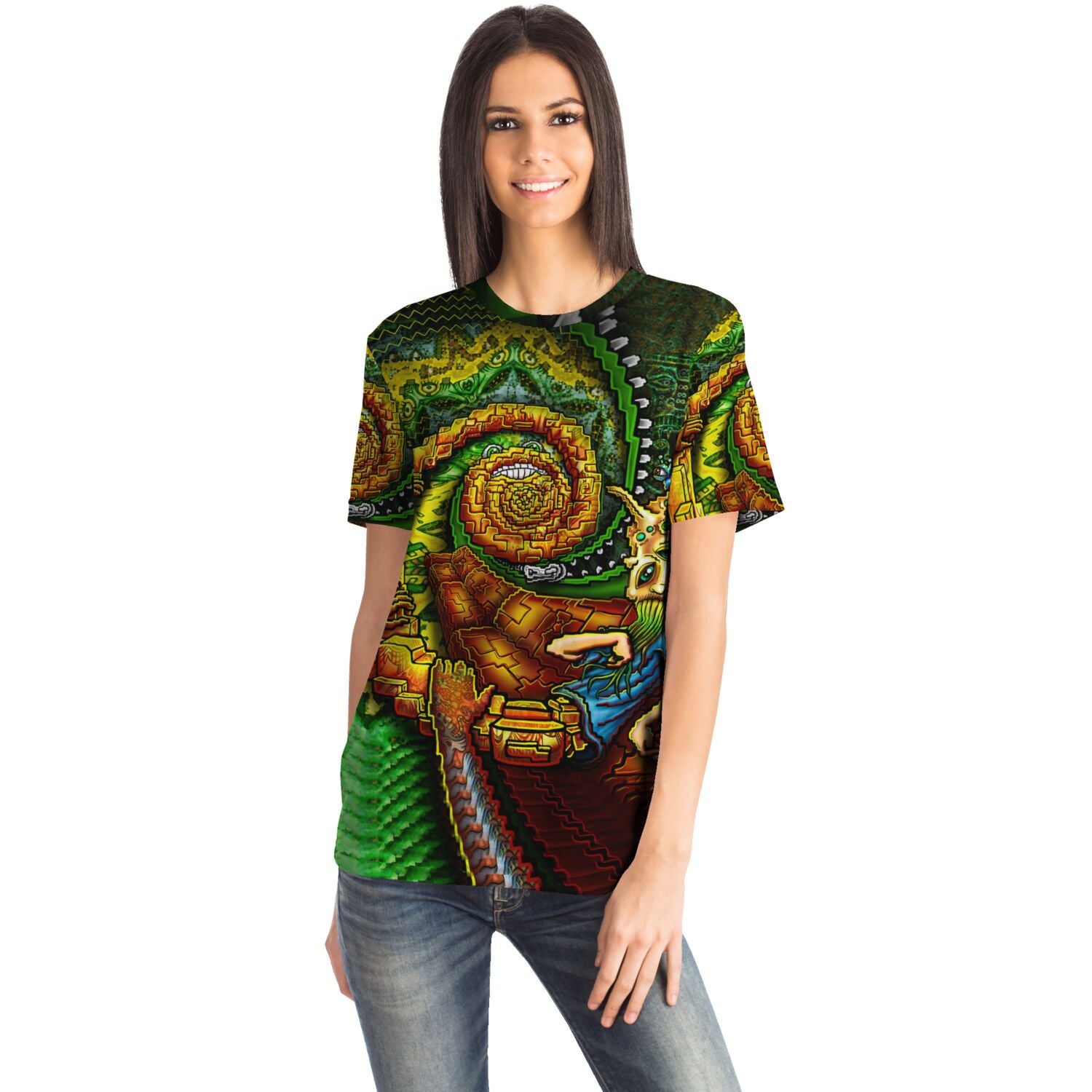 Featuring a crew neck, short sleeves, and a premium 100% polyester fabric with a cotton handfeel, and high definition printing that won't fade after washing.