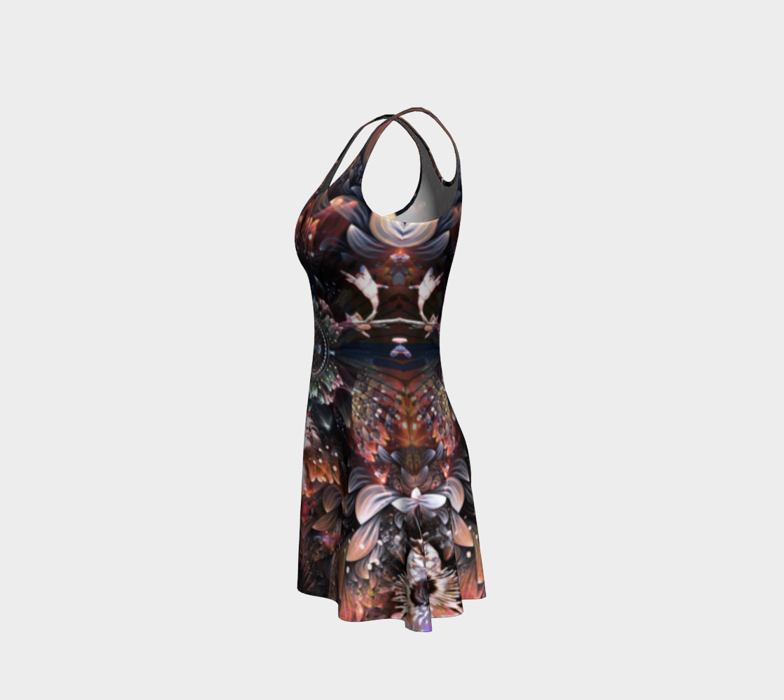 Featuring a fitted, body hugging top with a flared bottom skirt starting at the waist, this flared dress is ready to move with you from office to dance floor.