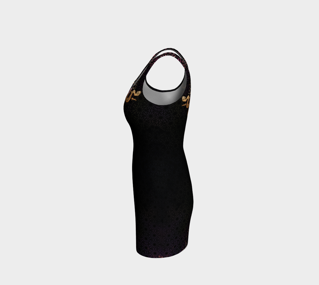 • Fitted dress hugs your body and the bottom falls just above mid-thigh on most people