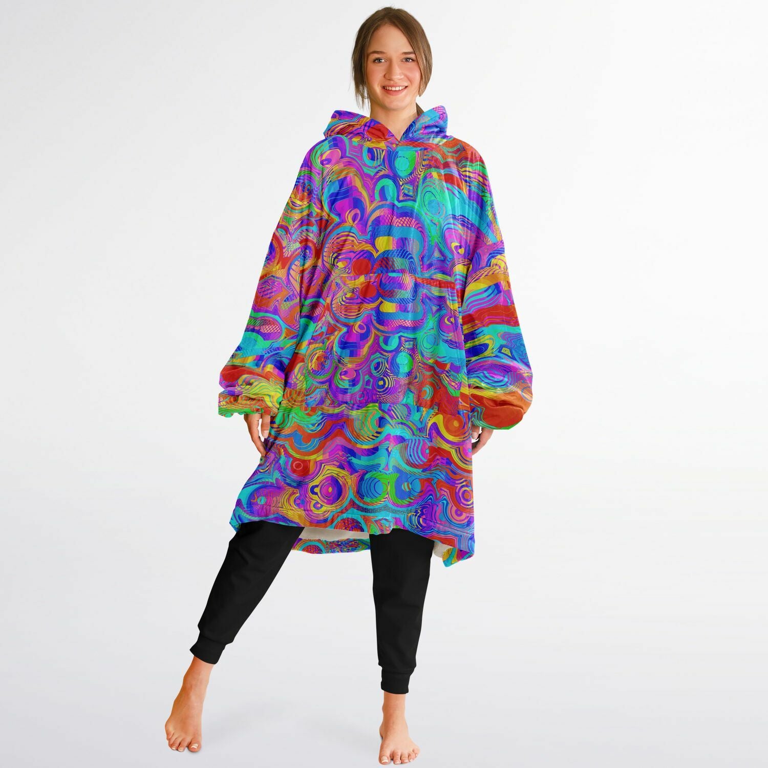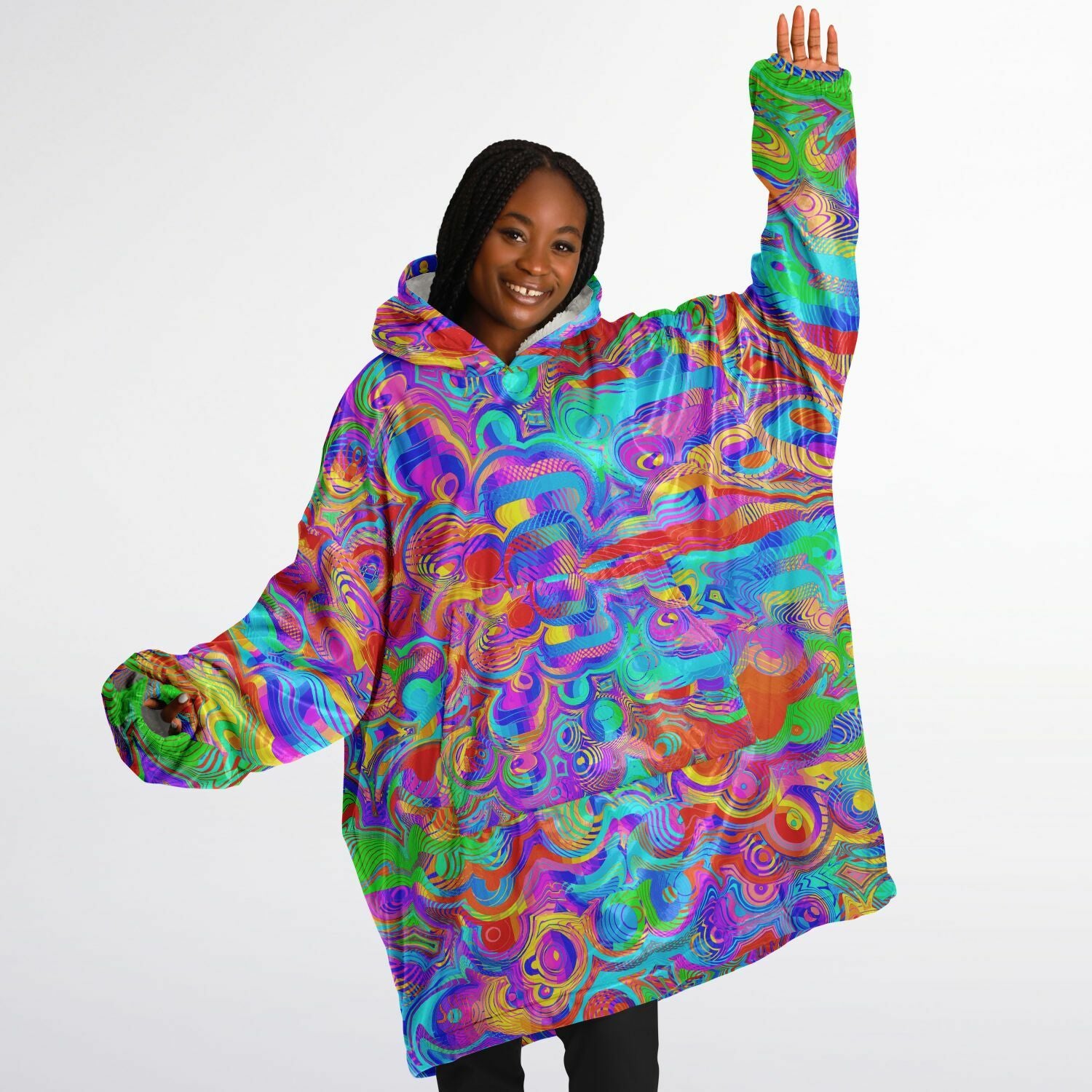 Wrap yourself in ultimate comfort with our Snug Hoodie. This one-size-fits-all wearable blanket is perfect for adults up to size 5XL. Made with a silky smooth micro-mink polyester exterior and an ultra-soft microfiber fleece interior, it’s perfect for cozying up at home or staying warm on the go.